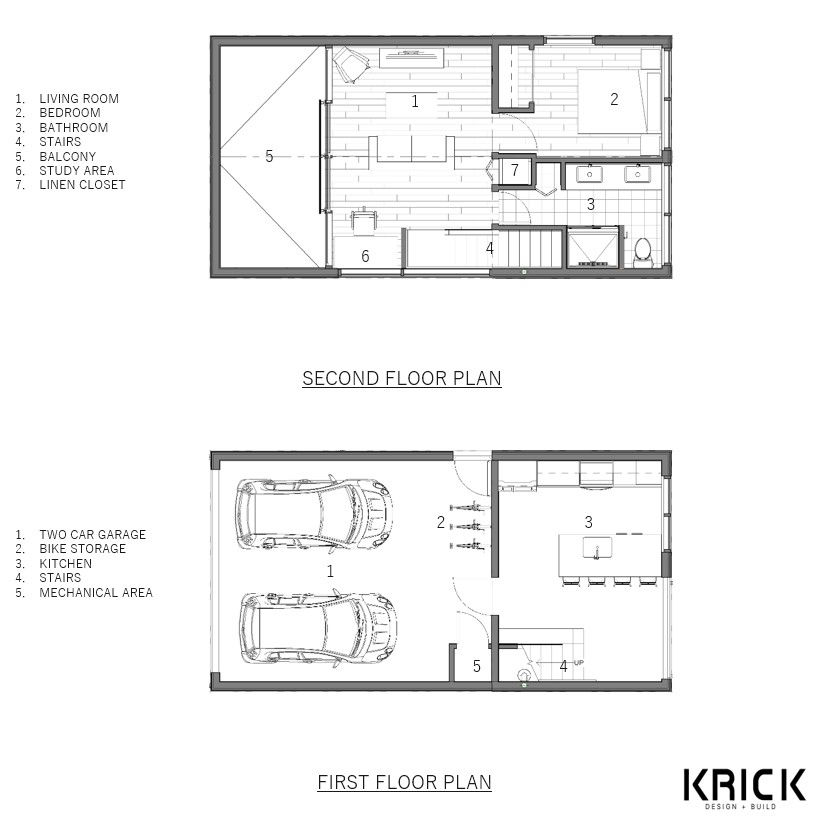 These construction documents do not include any site design, zoning considerations, site utilities, survey, structural engineering, civil engineering, landscaping or mechanical. Depending upon the municipality you may need any or all of these other drawings to make a complete submittal for permit. If your project is located in Colorado, we are happy to site this design on your lot and provide all the necessary drawings needed for permit. This service typically costs $5,000 on top of whatever design you pick at checkout. Email info@krickdb.com for more information.